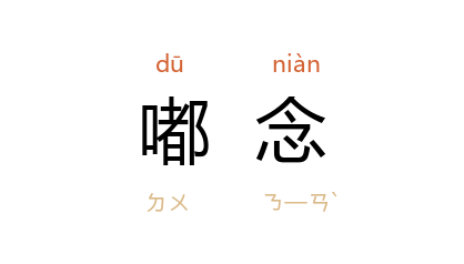 ⒈ 亦作“嘟唸”。嘟囔,念叨。