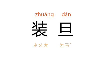 引宋 周密 《武林旧事·乾淳教坊乐部》:“装旦 孙子贵。”明 胡应麟 《少室山房笔丛·庄岳委谈下》:“范传康、上官唐卿、吕敬迁 三人弄假妇人。假妇人即后世装旦也。”明 胡应麟 《少室山房笔丛·庄岳委谈下》:“元 襍剧旦有数色,所谓装旦,即今正旦也。”