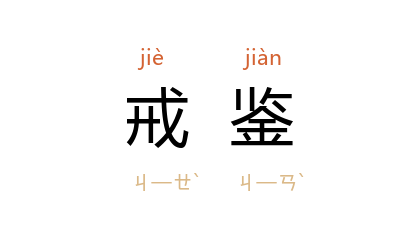 ⒈ 见“戒鑑”。亦作“戒鉴”。警戒;引以为戒。