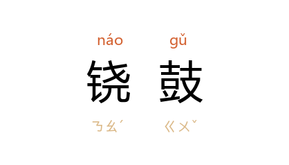 ⒈ 乐器中鼓的一种。唐时大驾出行,卤簿鼓吹,有前后两部,皆有铙鼓十二。又凯旋入京都,行献俘仪,奏凯乐所有铙吹二部乐中。亦有铙鼓。见《新唐书·仪卫志下》。