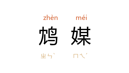 ⒈ 后因以“鸩媒”指善用谗言害人的人。