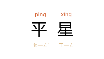 引《晋书·天文志上》:“平星二星,在库楼北,平天下之法狱事,廷尉之象也。”隋 李播 《周天大象赋》:“按三条於平道,宾万国於天门,置平星以决狱,列骑官而卫閽。”