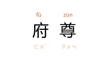 引《好逑传》第三回:“精精緻緻做成一个庚帖,亲送与府尊看道:‘蒙太公祖吩咐,不敢抗违,谨送上庚帖。’”《儒林外史》第六回:“严贡生 看了这批……随即写呈到府里去告。府尊也是有妾的,看着觉得多事。”