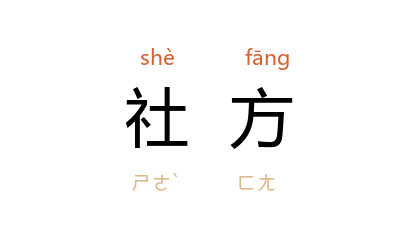 ⒈ 古谓祭祀后土神和四方。语出《诗·小雅·甫田》:“以我齐明,与我犠羊,以社以方。”郑玄笺:“秋祭社与四方,为五谷成熟报其功也。”孔颖达疏:“社,祭土神……祭四方,谓祭五官之神于四郊也。”