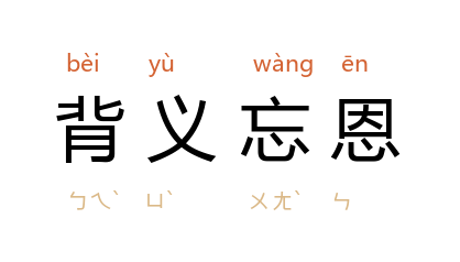 引元 无名氏 《谢金吾》第三折:“不想他背义忘恩,更待干罢。”明 梁辰鱼 《浣纱记·死忠》:“我为汝父忠臣,西破强 楚,南服劲 越,名扬诸侯,有霸王之功。今日背义忘恩,反赐我死。”清 洪昇 《长生殿·骂贼》:“那满朝文武,平日高官厚禄……那一件不是朝廷恩典,如今却一箇箇贪生怕死,背义忘恩,争去投降不迭。”