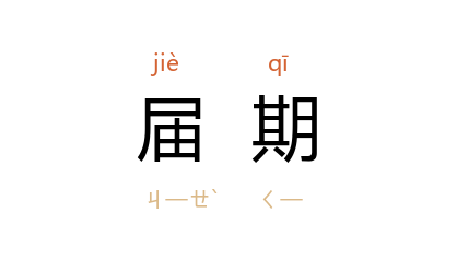 引《儒林外史》第三十回:“届期齐集湖亭,各演杂剧。”刘师培 《悲佃篇》:“及选举届期,佃人欲保其田,势必曲意逢迎,签以田主应其举。”