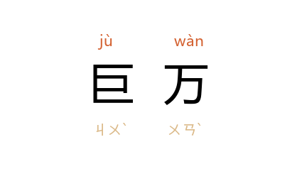 ⒈ 形容数目极大。唐·王勃〈梓州郪县灵瑞寺浮图碑〉:「思宏法愿,重缉奇功,党集且千,家惟巨万。」也作「钜万」。
