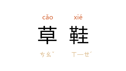⒈ 用稻草或其他长纤维草手工编制的一种简易鞋。