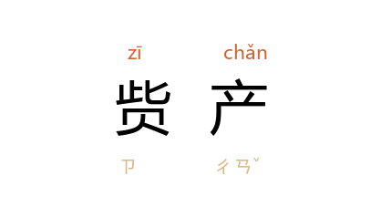 引《后汉书·刘盆子传》:“母家素丰,貲产数百万。”宋 马令 《南唐书·潘佑传》:“闭门读书,不营貲产。”明 李开先 《姜烈妇杨氏碑记》:“貲产约为四分,让其美而取其一分薄者,人皆称 姜生 之公,殊不知大半烈妇之力也。”
