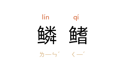 ⒈ 鱼的鳞片和鳍。