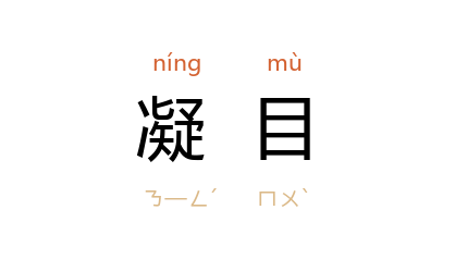 引唐 刘象 《鹭鸶》诗:“几日下巢辞紫阁,多时凝目向晴空。”《警世通言·一窟鬼癞道人除怪》:“他年清梦,千里犹到城阴溪曲,应有凌波,时为故人凝目。”郭沫若 《高渐离》第四幕:“高渐离 立室中,凝目注视。”