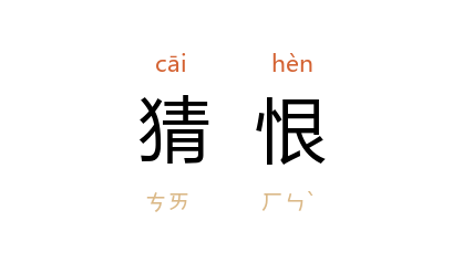 引《东观汉记·段熲传》:“张奂 事埶相反,遂怀猜恨。”《文选·鲍照<白头吟>》:“何慙宿昔意,猜恨坐相仍。”李善 注:“《方言》曰:猜,疑也。”唐 冯著 《短歌行》:“君但开怀抱,猜恨莫怱怱。”