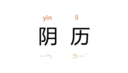 ⒈ 一种历法。根据月球绕行地球的周期而制定。像回历以十二次月圆当作一年,便是典型的例子。至于我国自古沿用至今的农历,虽然通称为「阴历」,实际上是一种阴阳合历。