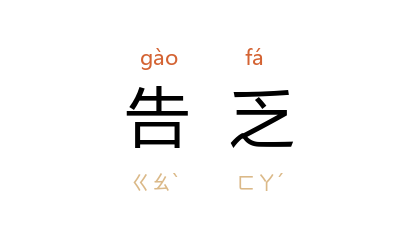 引《艺文类聚》卷三五引 三国 魏 应璩 《与尚书诸郎书》:“中馈告乏,役者莫兴。”郭沫若 《对于文化人的希望》:“汽车行每隔三五日也要轮流地被强迫停歇业一日,这所表示的是什么?便是汽油的告乏啊!”
