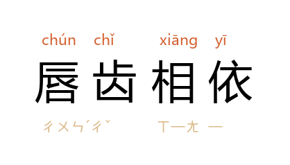 脣齒相依:比喻关系密切,互相依靠。 《三国志·魏志·鲍勋传》:“王师屡征而未有所克者,盖以 吴 蜀 脣齿相依,凭阻山水,有难拔之势故也。”