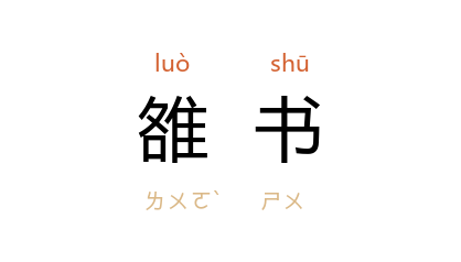 ⒈ 洛书。儒家关于《尚书·洪范》“九畴”创作过程的传说。雒,通“洛”。参见“洛书”、“河图洛书”。