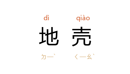 ⒈ 地球的表层部分。其主要由坚硬的岩石所组成,主要成分包括氧、硅、铝、镁、铁等。在陆地部分厚约三十五公里,以花岗岩为主;在海洋部分厚约五公里,以玄武岩为主。