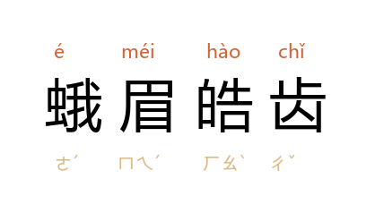引汉·司马相如〈美人赋〉:「有一女子,云发丰艳,蛾眉皓齿,颜盛色茂。」《洛阳伽蓝记·卷三·高阳王寺》:「王有二美姬,一名修容,一名艳姿,并蛾眉皓齿,洁貌倾城。」