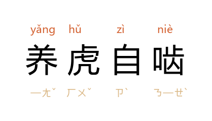 亦作“养虎自残”、“养虎自毙”。 《魏书·羯胡石虎传》:“丞相便相凌蹈,恐国祚之灭不復久矣。真可谓养虎自残者也。”