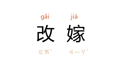 ⒈ 妇女离婚或丈夫死后再同别人结婚。