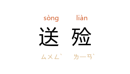 引《石点头·瞿凤奴情愆死盖》:“方氏 索性送殮过了,方才归家。”鲁迅 《彷徨·孤独者》:“我和 魏连殳 相识一场,回想起来倒也别致,竟是以送殓始,以送殓终。”茅盾 《子夜》二:“本想明天来辞行,如今恰又碰上老太爷的大事,是该当来送殓的。”