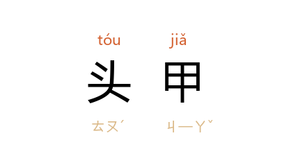 ⒈ 科举制度殿试的第一等。分甲之制,始于宋·太平天国八年,当时头甲有数人,至元·明,头甲仅限三人,即所谓状元、榜眼、探花。
