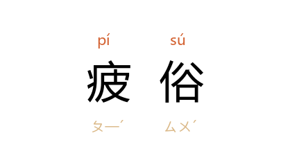 引《资治通鉴·唐昭宗天复二年》:“外破元凶,内康疲俗,名高五霸,道冠八元。”宋 司马光 《送祖之守陕》诗:“仁风思布濩,疲俗待绥寧。”元 曹之谦 《自赵城还府》诗:“独怜疲俗诛求困,愁嘆声多不可闻。”