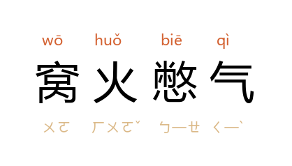 引周立波 《暴风骤雨》第一部五:“李青山 有些胆怯,他退到门边,嘴头咕噜着:‘滚就滚吧!’扭转身子,窝火憋气地迈出门去了。”王士美 《铁旋风》第一部第五章:“怎么受压?嘿,说起来叫人窝火憋气呗!”
