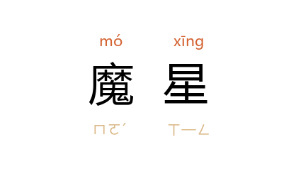 引《红楼梦》第十九回:“黛玉 听了,睁开眼,起身笑道:‘真真你就是我命中的魔星,--请枕这一个!’説着,将自己枕的推给 宝玉。”欧阳予倩 《渔夫恨》第一场:“逼得我吐血的是他;请我来这里坐牢的也是他;打烂我屁股的也是他;他是我命里的魔星。”