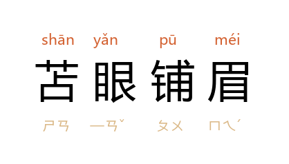 引《諕范叔·第一折》:「但有些个好穿著,好靴脚,出来的苫眼铺眉,一个个纳胯那腰。」《风光好·第三折》:「空这般苫眼铺眉立那教门,我须索心恭谨,意殷勤,侑尊。」