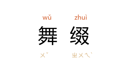 ⒈ 缀,犹酇,指舞人的站位。后以“舞缀”指舞乐。