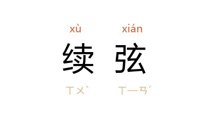 ⒊ 古以琴瑟喻夫妇,因谓丧妻曰断弦,再娶曰续弦。