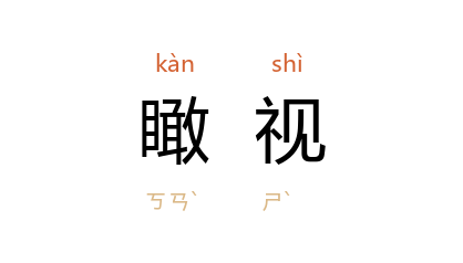 引清 姚鼐 《宋双忠祠碑文》:“元 雄北方,既脱金距,瞰视 江 淮。婴儿稚女,谁固人心?”吴晨笳 《姐妹》:“站在窗前,向下瞰视,不远的山脚下流过一道清澈如镜的山河。”管桦 《爆炸大王·深河爆炸》:“漯河 东北犄角一座炮楼,瞰视着 深河镇。”