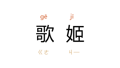 ⒈ 歌女。也作「歌伎」、「歌妓」。