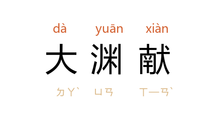 ⒈ 亥年的别称。古以太岁在天宫运转的方向纪年。太岁指向亥宫之年称大渊献。《尔雅·释天》:“﹝太岁﹞在亥曰大渊献。”后亦用作十二支中“亥”的别称。