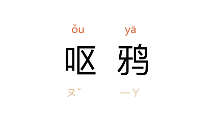 ⒈ 亦作“呕鵶”。 象声词。鸦,一本作“鵶”。