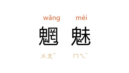 ⒈ 传说中的山川精怪,鬼魅。