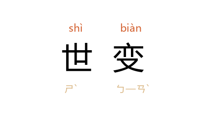 引《书·毕命》:“既歷三纪,世变风移,四方无虞。”宋 陆游 《月下小酌》诗:“世变浩无穷,成败翻覆手。”清 恽敬 《乙瑛碑跋》:“盖 东汉 之末,其风气渐及 六朝,可以观世变也。”朱自清 《<文集>二自序》:“中间相隔五年,看过了多少世变;写到这里,不由得要停笔吟味起来。”