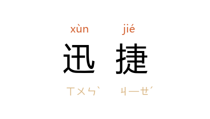 ⒈ 迅速快捷。晋·傅玄〈走狗赋〉:「既迅捷其无前,又闲暇而有度。」也作「迅疾」。