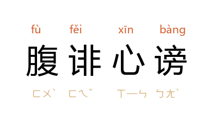 引《史记·卷一〇七·魏其武安侯传》:「魏其、灌夫日夜招聚天下豪桀壮士与议论,腹诽而心谤。」《三国志·卷一二·魏书·崔琰传》「遂赐琰死」句下裴松之注引《魏略》:「太祖以为琰腹诽心谤,乃收付狱,髡刑输徒。」