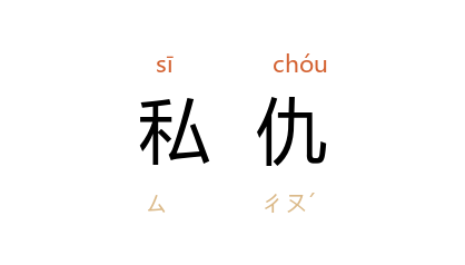 ⒈ 个人的仇恨。也作「私雠」。