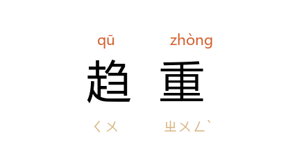 引《洪秀全演义》第二一回:“将来天下大势,必趋重海权。”蔡元培 《三十五年中国之新文化》三:“其他各大学所研究的,大抵趋重于中外社会现状与其趋势。”瞿秋白 《饿乡纪程》四:“此后 北京 青年思想,渐渐的转移,趋重于哲学方面,人生观方面。”