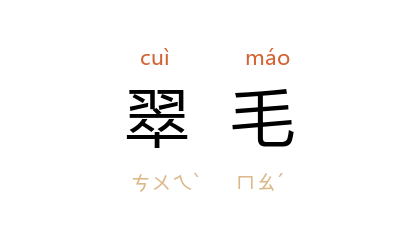 ⒈ 翠鸟的羽毛。参阅 宋 赵汝适 《诸蕃志·翠毛》。