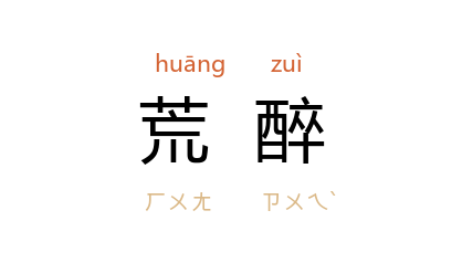引《晋书·周顗传》:“顗 荒醉失仪,復为有司所奏。”南朝 梁武帝 《凡百箴》:“勿恃尔尊,骄慢淫昏;勿谓尔贵,长夜荒醉。”唐 皮日休 《<酒箴>序》:“﹝ 皮子 ﹞终年荒醉,自戏曰醉士。”