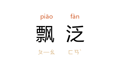 引唐 康骈 《剧谈录·华山龙移湫》:“每秋风摇落,未尝有草木飘泛其上。”南唐 李中 《舟次彭泽》诗:“飘泛经 彭泽,扁舟思莫穷。”周立波 《山乡巨变》下一:“雾色的炊烟飘泛在家家的屋顶。”