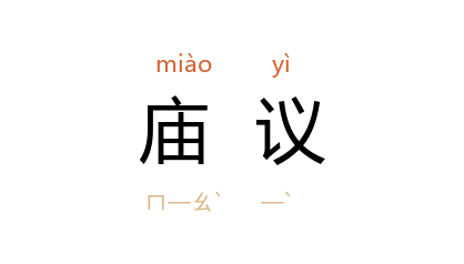⒈ 关于宗庙礼制的议论。 《新唐书·朱子奢传》:“始, 武帝 时,太庙享止四室。 高祖 崩,将祔主于庙,帝詔有司详议。