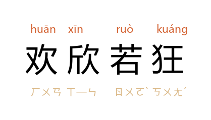 例如:「当小王接获失散多年的父亲来信时,真是欢欣若狂。」