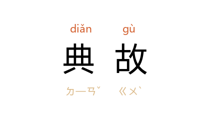 ⒉ 诗文等作品中引用的古代故事和有来历出处的词语。