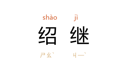 引《三国志·魏志·高贵乡公髦传》“乙巳, 沛王 林 薨” 裴松之 注引 晋 孙盛 《魏氏春秋》:“自古帝王功德言行,互有高下,未必创业者皆优,绍继者咸劣也。”唐 道宣 《<净住子>序》:“所谓浄住,身口意,身絜意,如戒而住,故曰浄住。子者绍继为义。”《敦煌变文集·频婆娑罗王变文》:“时则有 王舍大城 频婆娑罗王,统渥瞻部,绍继黔黎。”