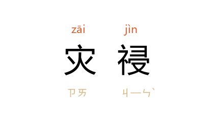 引明 张煌言 《天地解而雷雨作》:“若过为鼓润,而禎祥由之,灾祲亦由之也。”《清史稿·后妃传论》:“外侮迭乘,灾祲屡见。”鲁迅 《花边文学·法会和歌剧》:“《时轮金刚法会募捐缘起》中有这样的句子:‘古人一遇灾祲,上者罪己,下者修身。’”